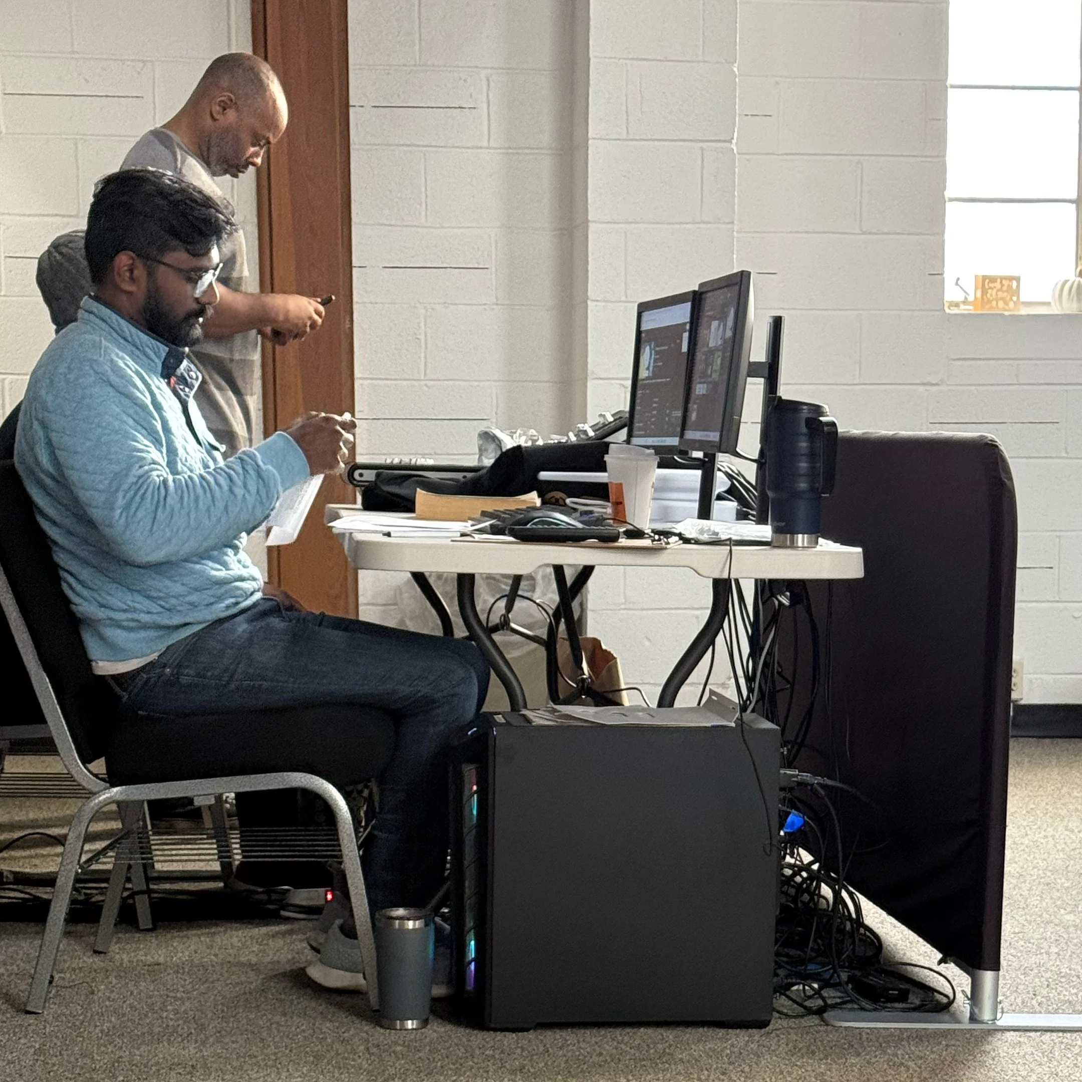 The Audio/Visual/Lighting team is a vital part of supporting services and events at The Hill. Working behind the scenes, the team helps create a smooth and effective experience through sound, visuals, lighting, live stream, and recording for both in-person and online engagement.